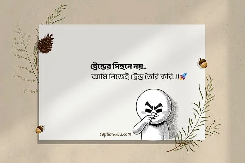 স্টাইল শুধুমাত্র পোশাকের নয়, এটি আপনার অভ্যন্তরীণ attitude এবং আত্মবিশ্বাসের প্রতিফলন। যখন আপনি নিজের মতো করে স্টাইল বেছে নেন, তখন আপনি বিশ্বকে জানিয়ে দেন, আপনি একান্তভাবে অন্য। নিম্নের ক্যাপশনগুলো আপনার attitude কে আরও শক্তিশালী করবে। 😎
