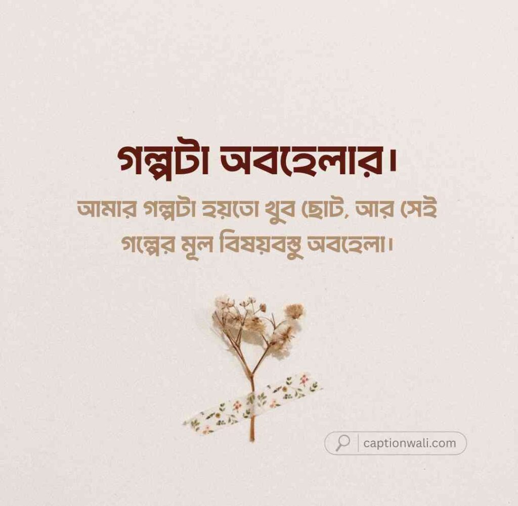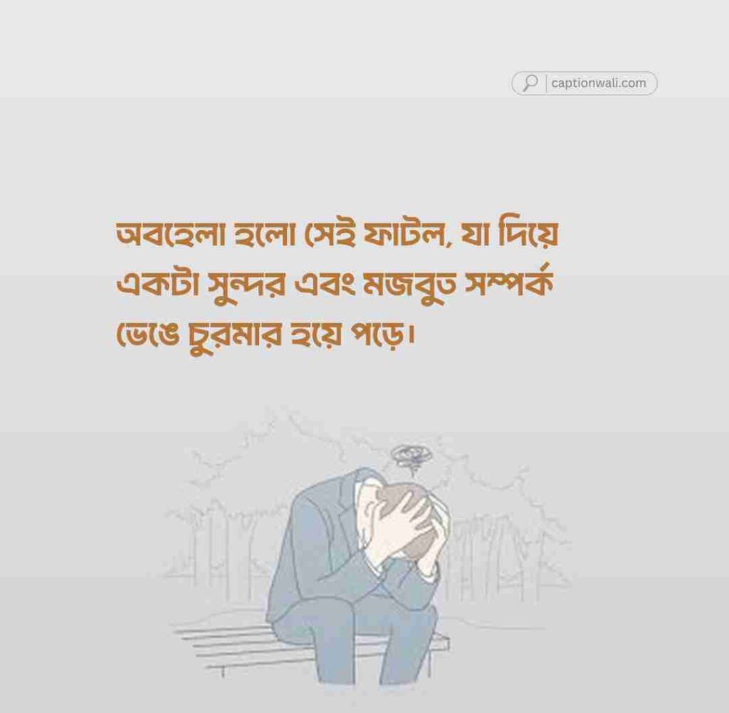অবহেলা নিয়ে যখন আপনি ছবি পোস্ট করবেন, তখন একটি উপযুক্ত ক্যাপশন আপনার ভেতরের কষ্টকে সুন্দরভাবে প্রকাশ করবে। এখানে অবহেলা নিয়ে কিছু দারুণ ক্যাপশন সাজানো হয়েছে।