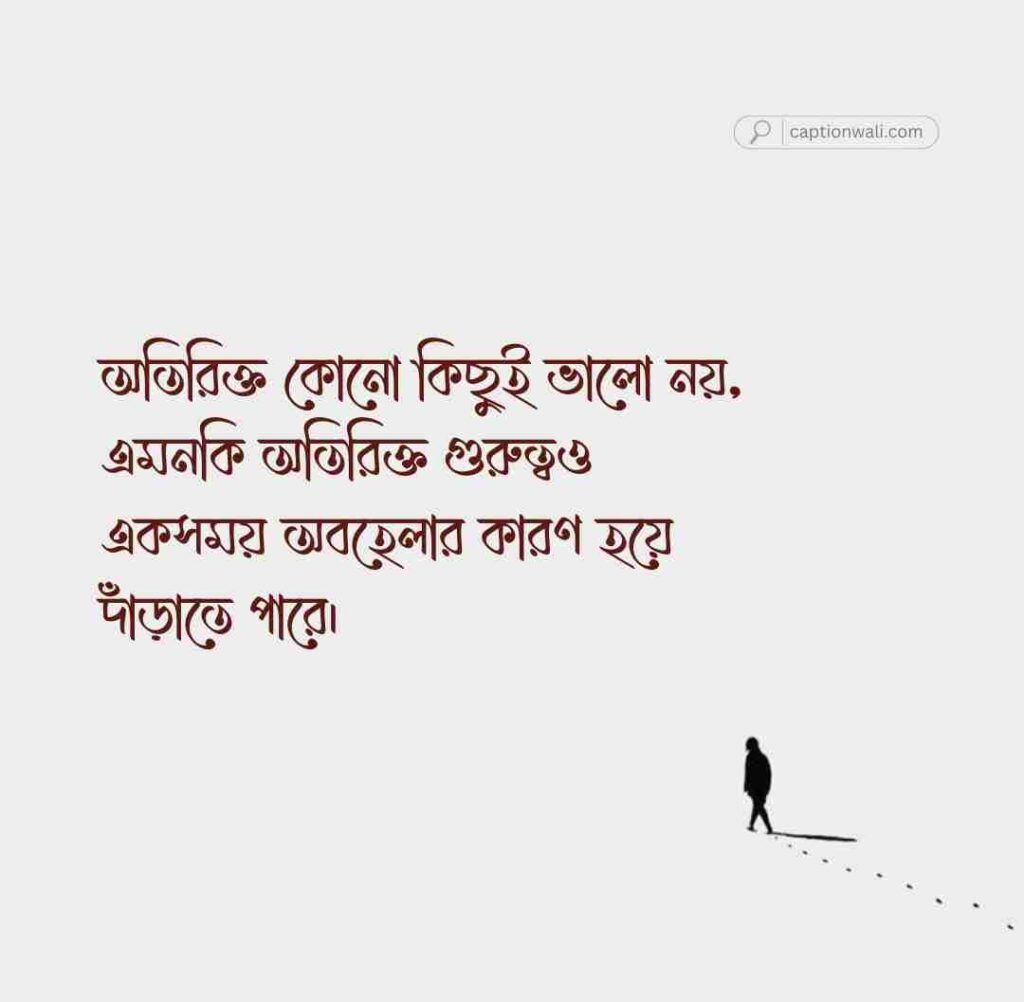 অতিরিক্ত কোনো কিছুই ভালো নয়, এমনকি অতিরিক্ত গুরুত্বও একসময় অবহেলার কারণ হয়ে দাঁড়াতে পারে।