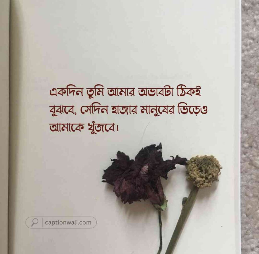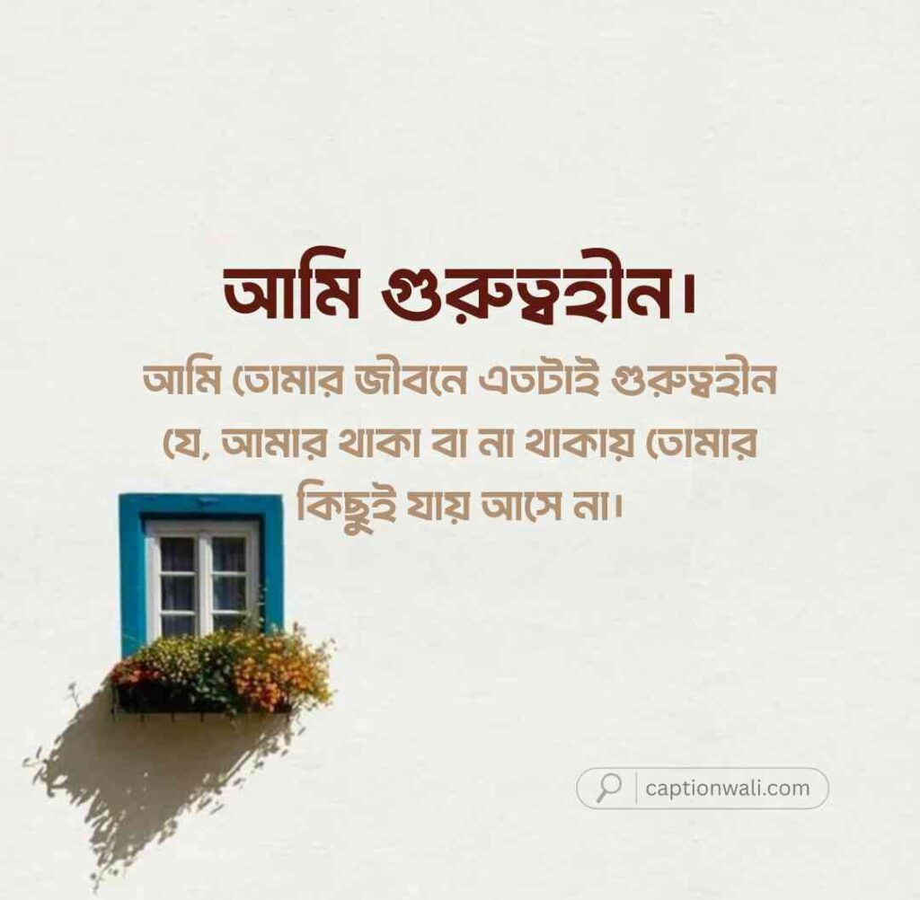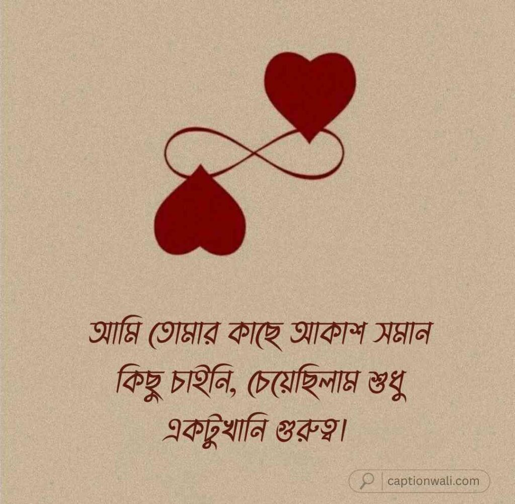 আমি তোমার কাছে আকাশ সমান কিছু চাইনি, চেয়েছিলাম শুধু একটুখানি গুরুত্ব। কিন্তু তুমি তোমার ব্যস্ততার পৃথিবীতে এতটাই মগ্ন যে, আমার অস্তিত্বটাকেই ভুলে গেছো।
