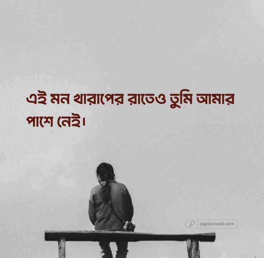 এই মন খারাপের রাতেও তুমি আমার পাশে নেই। এই মন খারাপের রাতেও আমি তোমার কথাই ভাবছি, আর তুমি হয়তো আমার অস্তিত্বটাই ভুলে গেছো। এই অনুভূতিটা যে কতটা কষ্টের, তা তুমি বুঝবে না।